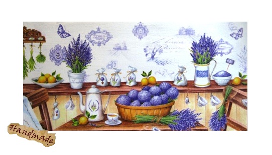 Tablou Décor lavanda, realizat manual cu tehnica decupaj, pe suport din lemn (mdf), margini pictate in culori acrilice, lacuit pentru protectie.